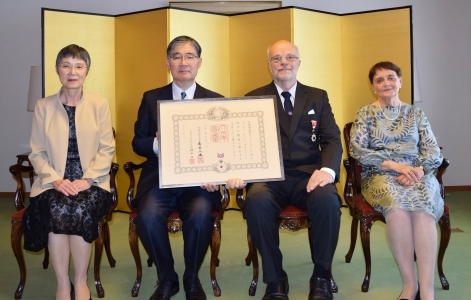 Japanin keisarin myöntämän kunniamerkin jakotilaisuus (Matti Joutsen, ent. johtaja, Euroopan kriminaalipolitiikan instituutti)