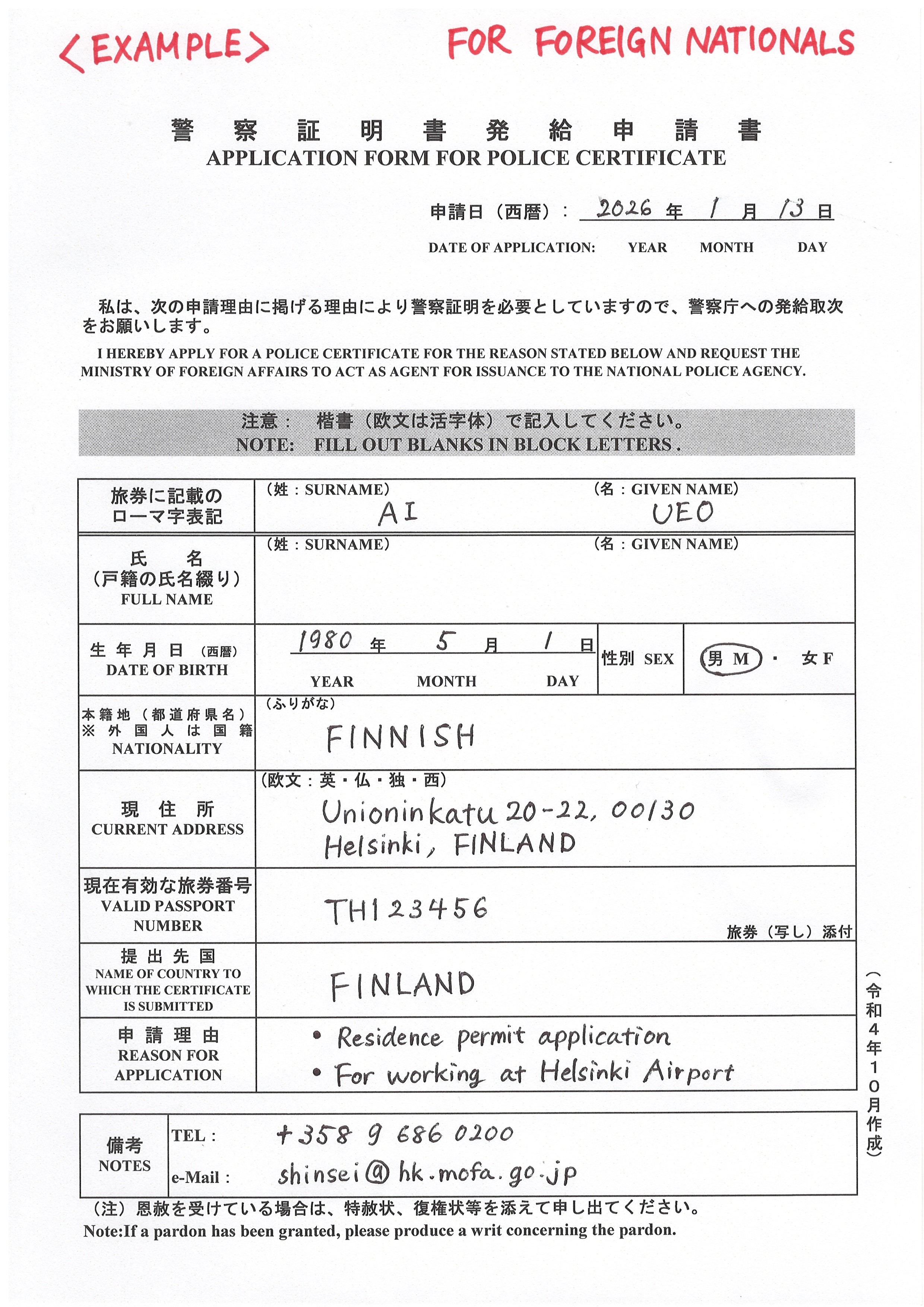 The Police Certificate reports whether you have a criminal record for the duration lived in Japan. Non-Japanese citizens may apply as well.