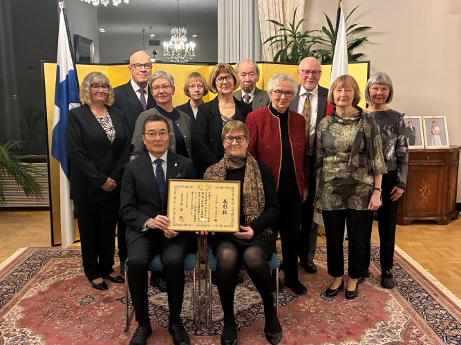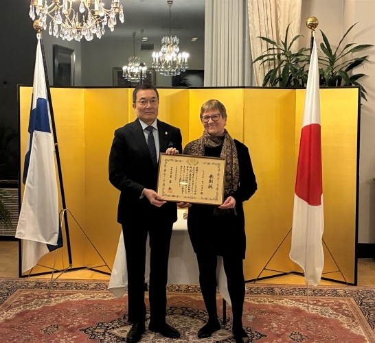 Japanin ulkoministerin huomionosoitusseremonia 2025 (Japanitalon entinen yrittäjä Tuija Seppänen)