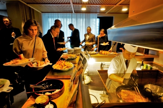 Vieraat pääsivät nauttimaan japanilaisesta kulttuurista myös japanilaisen ruoan, kuten tempuran ja sushin, sekä ammattilaisen esittelemän sake-valikoiman muodossa. Tarjolla oli myös japanilaisia kampasimpukoita, joilla nostettiin esille japanilaisten merenelävien herkullisuutta ja korkeaa laatua.