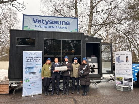 さらに、ユヴァスキュラ市に拠点を置き、カーボンニュートラルな社会の実現に向けた取組を行っているCefmof(Central Finland Mobility Foundation)の展示では、「水素サウナ」の体験や水素焙煎コーヒーの提供など、水素エネルギーを活用した取組の紹介も行われ、来場者の関心を集めました。